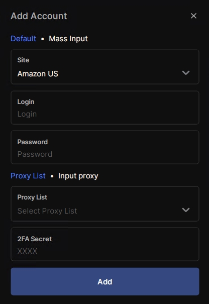 Finally, to add the 2FA key to your account, head over to Refract, create or edit an account for this corresponding Amazon account, and paste the key into 2FA Secret.