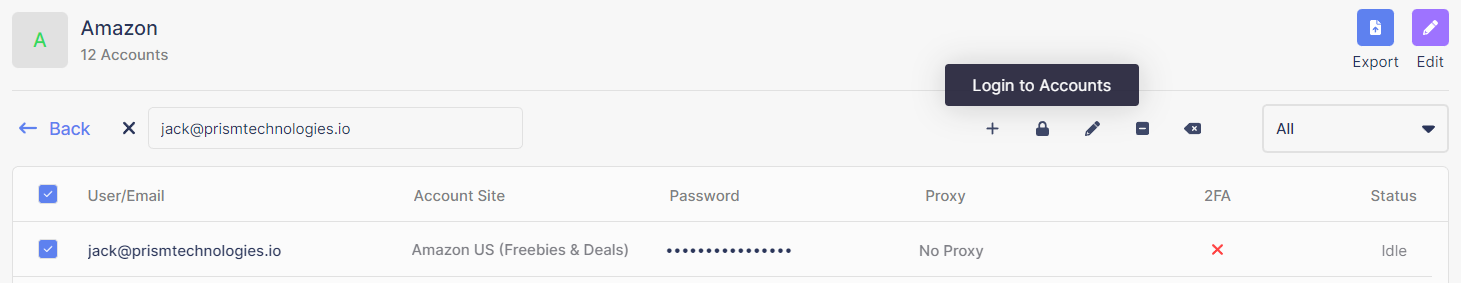 * Accounts can be added via the accounts tab. The accounts tab is located directly below the proxy group tab in the tool bar.&#x20;
