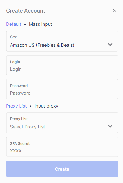 6. Next, choose a proxy list or input a proxy. If you have a proxy list, you can choose to use it for your accounts' logins or leave it blank. If you don't have a proxy list, you can add an individual proxy by clicking "Input proxy" and pasting a single proxy into the bot.