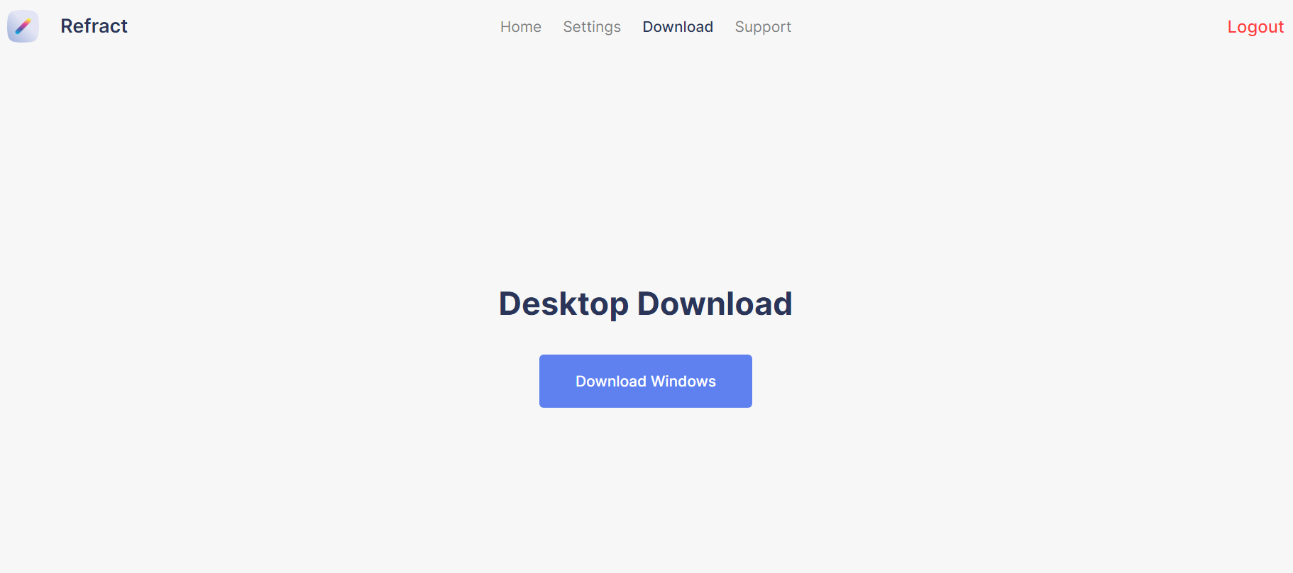 The download tab is where you can download the latest version of Refract. The dashboard will detect which operating software you are trying to download to.